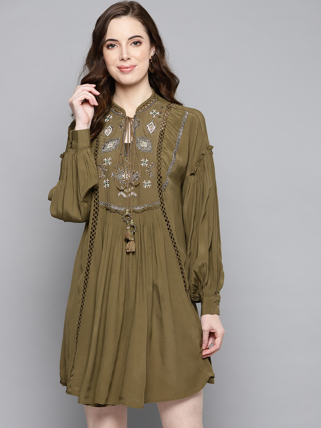 Buy Label Ritu Kumar Women Olive Green Solid A Line Dress Dresses For Women 9813811 Myntra