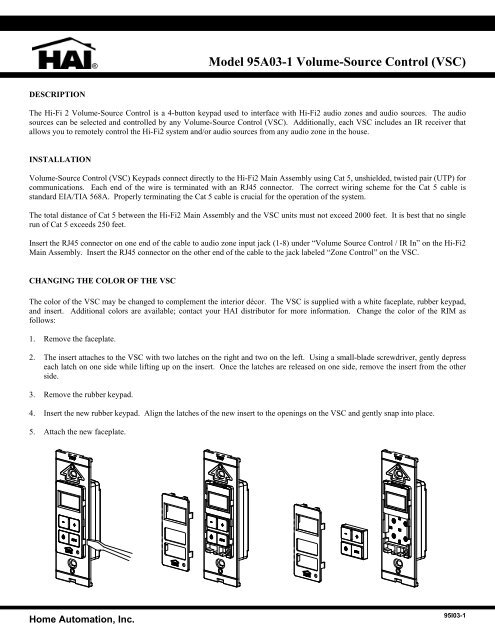 Model 95a03 1 Volume Source Control Vsc Home Automation Inc